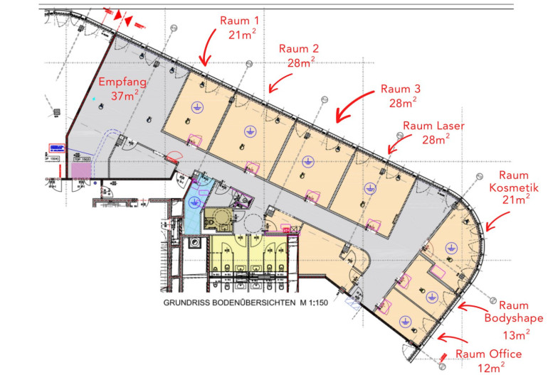 - repräsentativer Allgemeinbereich mit ca. 17 m2 (der derzeit auch als Infusionsraum genutzt wird)