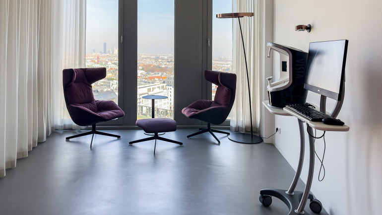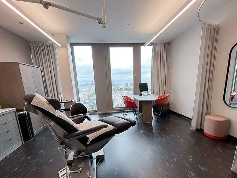 Das Ärztezentrum befindet sich im 15. Stock des THE ICON VIENNA im 10. Bezirk, direkt am Hauptbahnhof. Dieser hochmoderne Standort bietet einen atemberaubenden Blick über ganz Wien und schafft eine exklusive Oase der Ruhe über dem geschäftigen Treiben des Hauptbahnhofs. Die Lage vereint zeitgemäße Eleganz mit einem einzigartigen Panorama, was sie zu einem herausragenden Ort für medizinische Praxen macht. The medical practice is located on the 15th floor of THE ICON VIENNA in the 10th district, directly at the main train station. This state-of-the-art location offers a breathtaking view over the entire city of Vienna and creates an exclusive oasis of tranquility above the bustling activity of the main train station. The location combines contemporary elegance with a unique panorama, making it an outstanding place for medical practices.