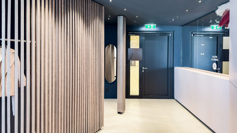 Die großzügigen, hohen Praxis- und Warteräume schaffen eine entspannende Wohlfühlatmosphäre für Patienten.