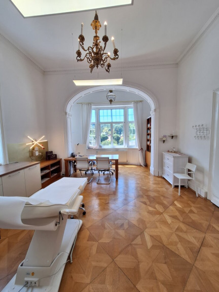 Die hochwertig ausgestatteten Ordinationsräume befinden sich in der exklusiven Villa Demel, eingebettet in die Neuwaldeggerstrasse 2 im 17. Bezirk. Diese Lage zeichnet sich durch ihre exklusive und ansprechende Umgebung aus, inmitten einer begehrten Wohngegend. Die Villa Demel strahlt eine helle und freundliche Atmosphäre aus, die sich perfekt mit dem anspruchsvollen Charakter des 17. Bezirks vereint. Die prächtige Architektur der Villa unterstreicht den hochwertigen Standard der Ordinationsräume und trägt zur Schaffung einer angenehmen Umgebung bei. Ein weiteres Highlight der Lage ist die hauseigene Apotheke, die nicht nur die medizinische Versorgung unterstützt, sondern auch eine gute Kundenfrequenz in der Umgebung gewährleistet. The high-quality equipped medical practice rooms are located in the exclusive Villa Demel, nestled in the Neuwaldeggerstrasse 2 in the 17th district of Neuwaldegg. This location is characterized by its exclusive and appealing surroundings, situated in the midst of a well-known residential area. Villa Demel exudes a bright and friendly atmosphere, perfectly complementing the sophisticated character of the 17th district. The magnificent architecture of the villa emphasizes the high standard of the medical practice rooms and contributes to creating a pleasant environment. Another highlight of the location is the in-house pharmacy, not only supporting medical care but also ensuring good customer traffic in the vicinity.