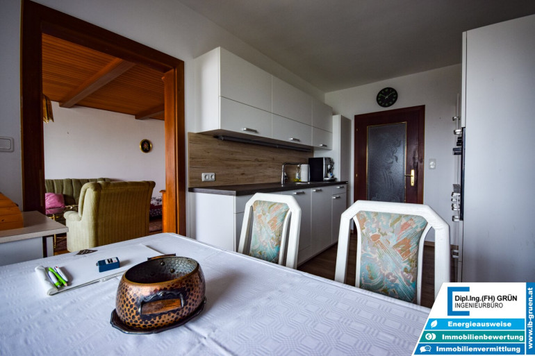 Herzstück ist die moderne, neue Einbauküche, die harmonisch in den Wohnbereich überleitet. Ein Kamin sorgt für behagliche Wärme. Die Anbindung an die Fernwärme garantiert eine komfortable und zukunftssichere Heizlösung.