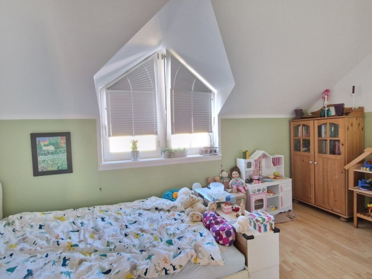 - Innenliegender Sicht- und Sonnenschutz (Plissee) bei allen Fenstern im Wohn- und Schlafbereich (auch bei den schrägen Fenstern)