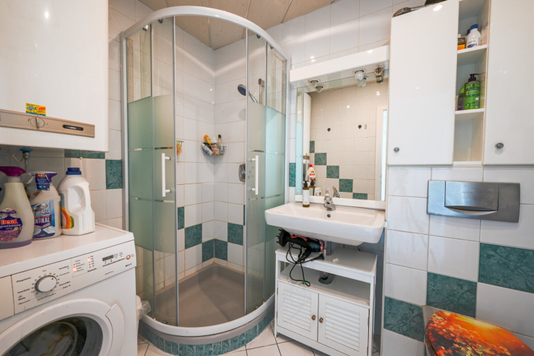 Fliesen, Laminatboden, Zentralheizung, Einbauküche, Dusche, Parkplatz