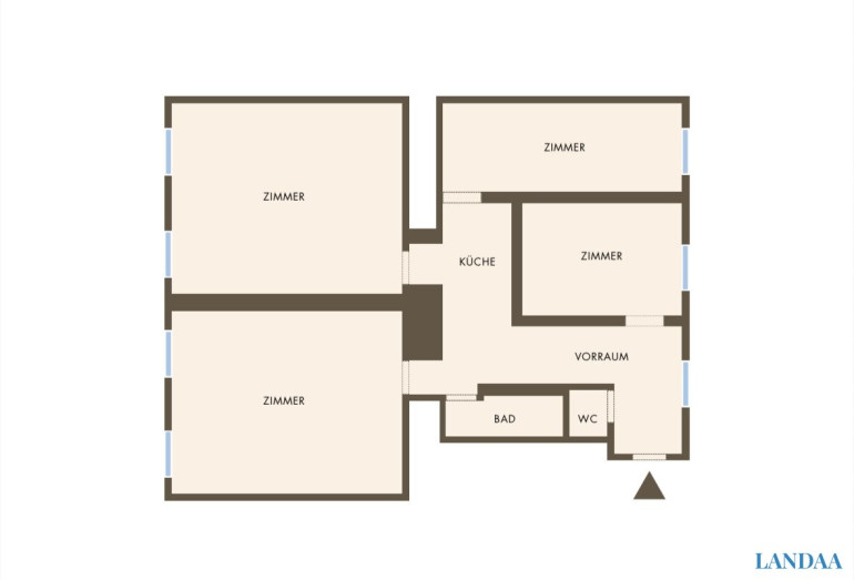 Der großzügige Grundriss umfasst ein weitläufiges Wohnzimmer, das als zentraler Mittelpunkt der Wohnung dient. Drei zusätzliche Schlafzimmer bieten ausreichend Rückzugsraum und flexible Nutzungsmöglichkeiten – ideal für Familien mit Kindern, Homeoffice oder Wohngemeinschaften.