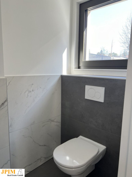 - Keller (mit Fußbodenheizung): Großer Tageslichtraum mit Saunaanschluss, Lagerraum, Abstellraum, Technikraum mit Waschbecken, Anschluss für Waschmaschine und Trockner