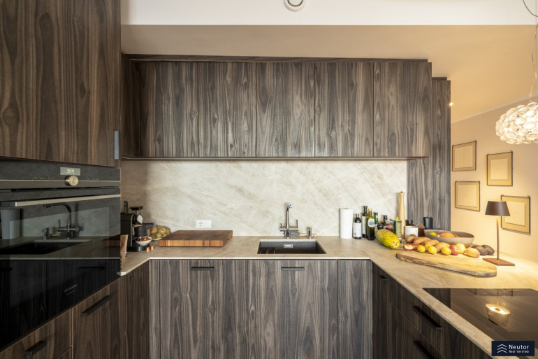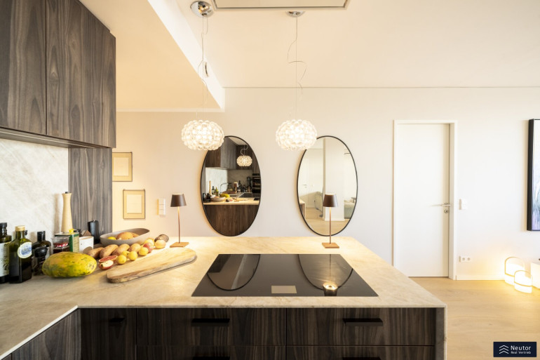Die Wohnung wurde vom heimischen Handwerkstischler ausgestattet. Dazu zählt die Küche mit echtem Quarzitsteinplatte, beleuchteter Glasvitrine, Einbauschränke im Eingangsbereich, begehbarer Garderobe und vieles mehr. Diese Einbauten sind im Kaufpreis enthalten.