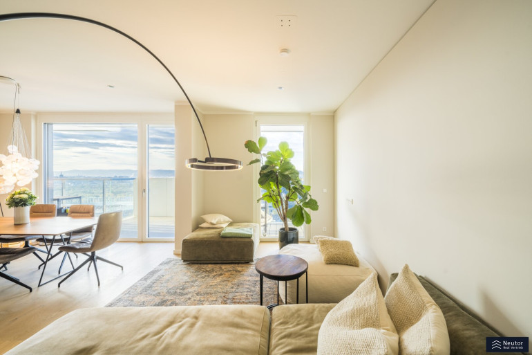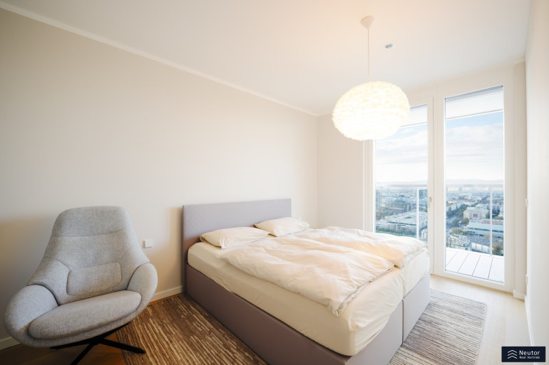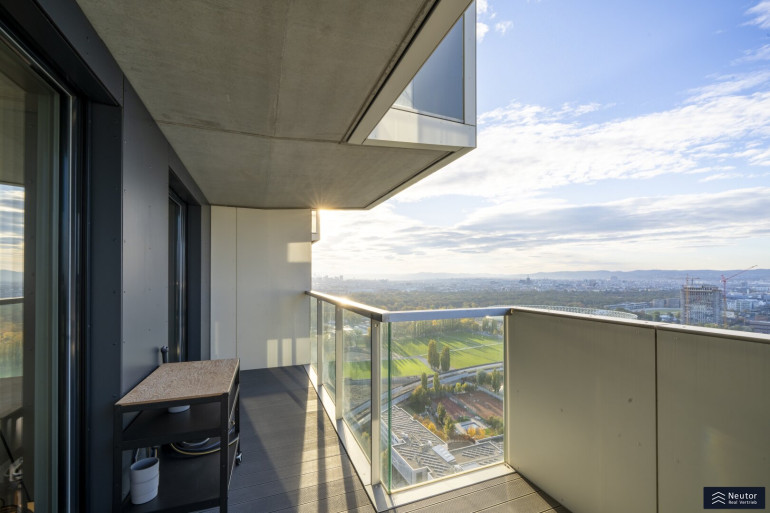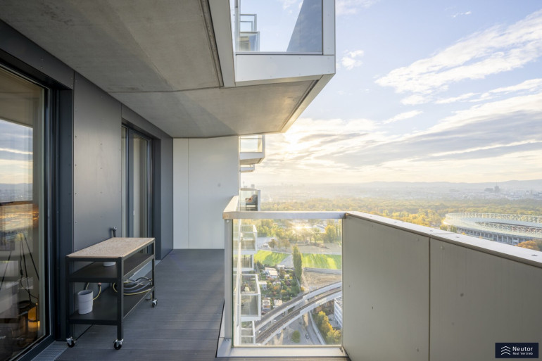 Zum Verkauf steht eine exklusive 3-Zimmer-Wohnung im 32. Stockwerk eines Neubaus in 110 Metern Höhe, mitten im Herzen des 2. Wiener Gemeindebezirks mit unvergleichlichem Fernblick über Wien, U-Bahn-Nähe und optionalem Stellplatz.