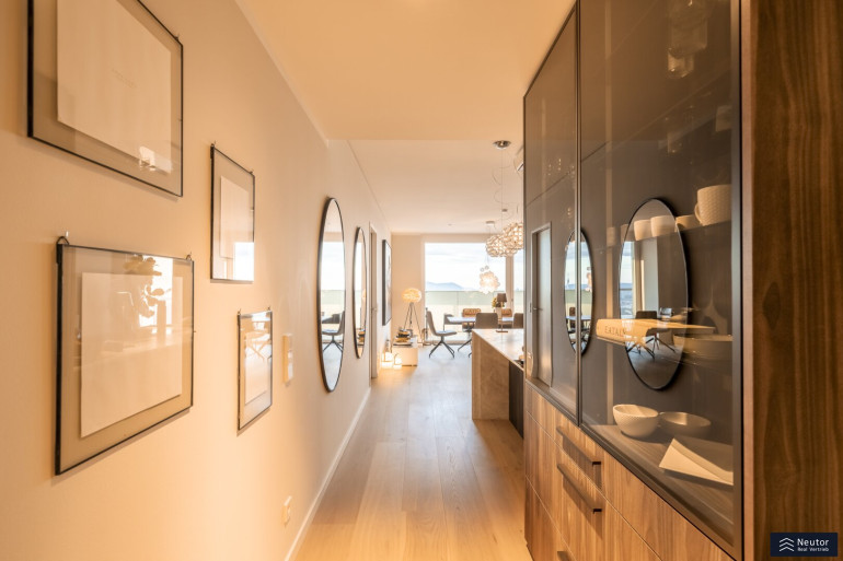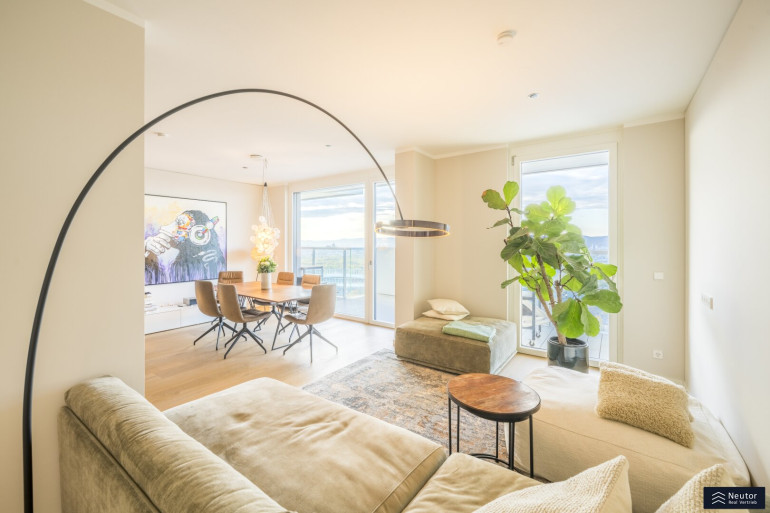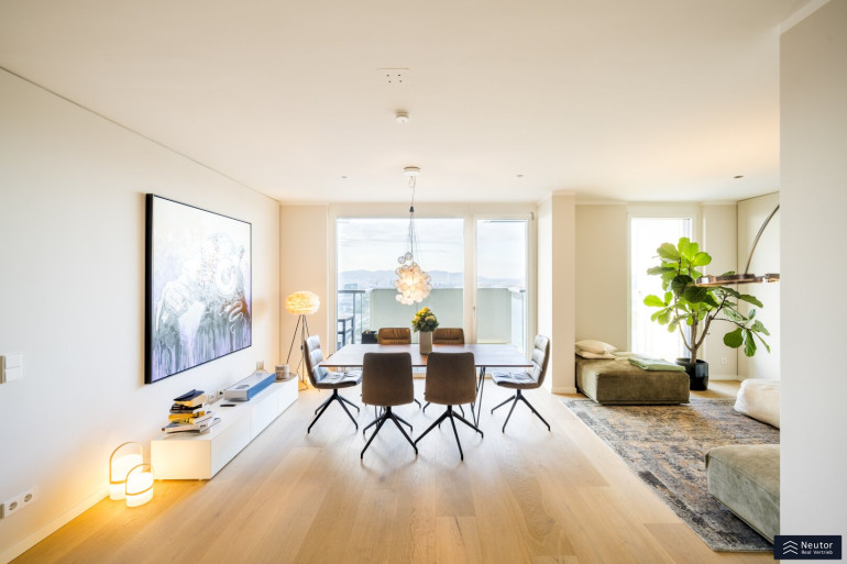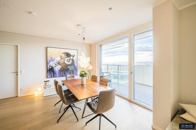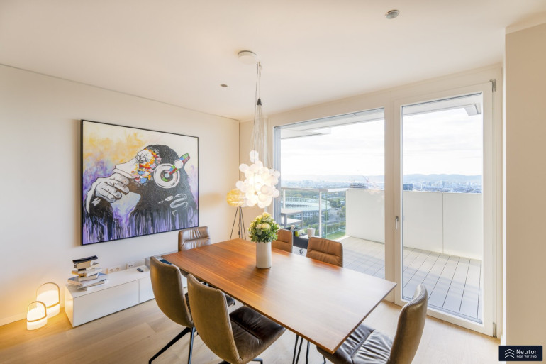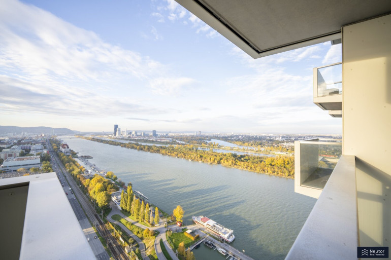 Willkommen in der atemberaubenden Luxusimmobilie "Marina Tower". Diese exklusive Wohnung befindet sich im 32. Stockwerk auf einer Höhe von 110 Metern und bietet Ihnen einen unvergleichlichen Fernblick über Wien. Mit hochwertigem Umbau, einem optionalen Tiefgaragenstellplatz, Deckenkühlung, Fußbodenheizung und edlem Parkettboden erleben Sie hier ein unvergleichliches Wohngefühl und ein außergewöhnliches Ambiente. Die ausgezeichnete Lage in der Nähe der U-Bahn-Station U2 Donaumarina ermöglicht Ihnen in wenigen Minuten die Innenstadt zu erreichen. Die 3 großzügig Räume mit dem Wohn-und Essbereich als Herzstück der Wohnung mit direktem Zugang zum Balkon bietet die perfekte Mischung aus Eleganz und Komfort. Es war ursprünglich eine 4 Zimmerwohnung, welche nach Fertigstellung aufwändig ein weiteres Mal auf Kundenwunsch saniert wurde. Das 4. Zimmer stellt der Eigentümer auf Wunsch gerne her. Ein zusätzlicher Abstellraum sorgt für Stauraum und Ordnung. Für Ihre Gäste steht ein separates WC mit Handwaschbecken zur Verfügung, welches absolute Privatsphäre garantiert. Die 2 Badezimmer dieser Immobilie sind wahre Highlights. Das erste Badezimmer beeindruckt mit einer begehbaren Dusche und einem Ankleidebereich, der direkt mit dem Schlafzimmer verbunden ist. Das zweite Badezimmer bietet eine luxuriöse Badewanne und eine weitere begehbare Dusche, ebenfalls mit direktem Zugang zum Schlafzimmer. Beide Badezimmer sind mit wunderschönen dunkelgrünen Fliesen ausgestattet, die Eleganz und Raffinesse ausstrahlen. Der großzügig gestaltete Wohn- und Essbereich besticht durch seine moderne Ausstattung. Sie gelangen vom Schlafzimmer sowie vom Wohn-und Essbereich auf den Balkon und die Loggia, von wo aus Sie einen spektakulären Blick auf die Donau und das Ernst-Happel-Stadion sowie über die Stadt genießen können. Solch grandiose Sonnenuntergänge haben Sie wahrscheinlich noch nie gesehen. Große Fensterfronten sorgen für viel Licht und schaffen eine lichtdurchflutete Atmosphäre. Die 2 Schlafzimmer sind mit edlem Parkettboden ausgelegt und bieten Ihnen einen ruhigen Rückzugsort für erholsamen Schlaf und pure Entspannung. Dank der Fußbodenheizung genießen Sie das ganze Jahr über angenehme Wärme und Behaglichkeit. Das Apartment befindet sich im 32. Stockwerk und bietet Ihnen einen atemberaubenden Ausblick über die Stadt. Hier erleben Sie das Gefühl von Freiheit und Exklusivität, das nur eine solch hochwertige Immobilie bieten kann.