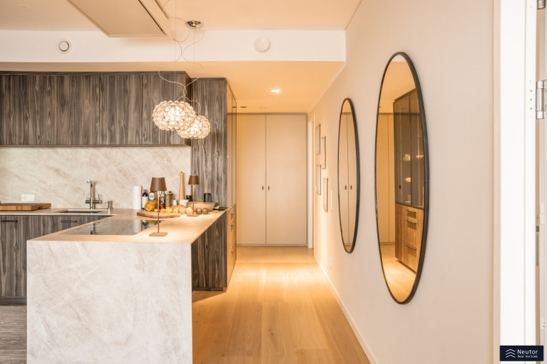 Parkett, Fliesen, Erdwärme, Fernwärme, Fußbodenheizung, Einbauküche, Wohnküche / offene Küche, Personenaufzug, Badewanne, Dusche, Wachdienst, Tiefgarage, Sauna, Sporteinrichtungen