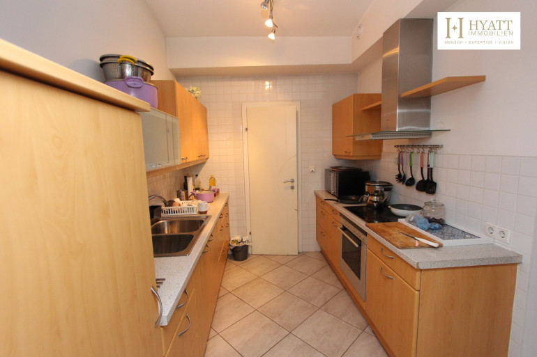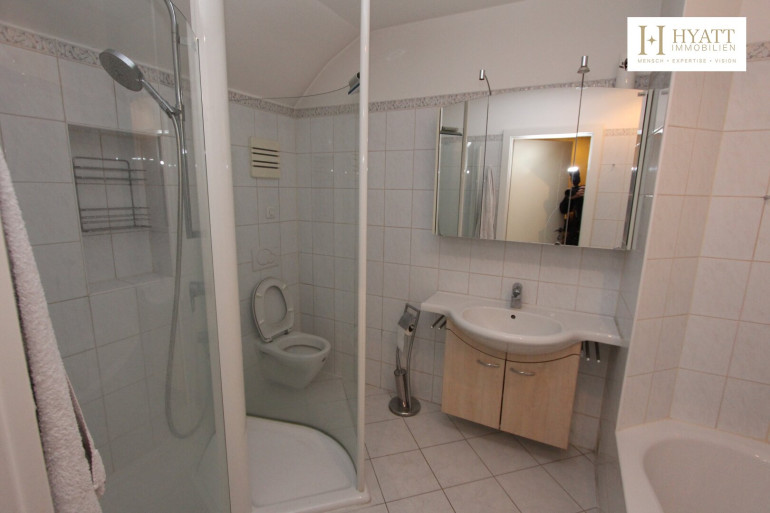 Laminatboden, Einbauküche, Dusche