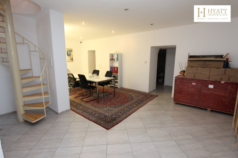 Über eine elegante Wendeltreppe gelangen Sie in den Keller mit direktem Garten-Zugang, ideal für Schulungen, Team-Events oder zusätzliche Behandlungsräume – der perfekte Platz für kreative Erweiterungen Ihres Angebots.