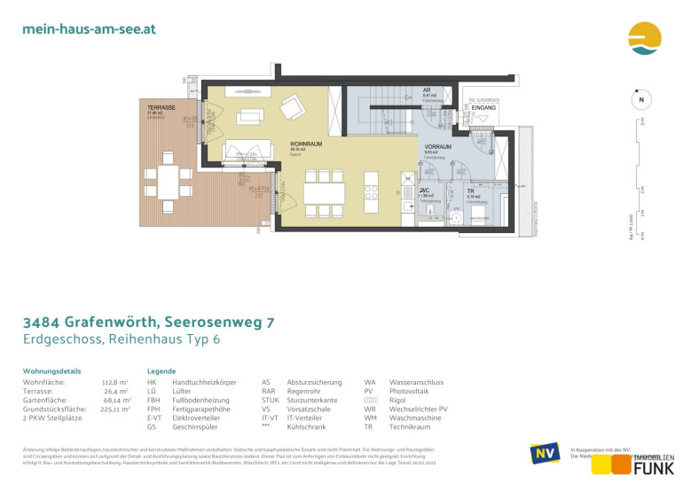 Sich den Traum vom Haus am See erfüllen und 365 Tage Urlaubsfeeling genießen. Das ist möglich im Sonnenweiher Grafenwörth, ca. 30 Fahrminuten von der Stadtgrenze Wiens entfernt, im Herzen der Region Wagram. Ein nachhaltiges, gut durchdachtes Gesamtkonzept, erstklassige Architektur, hochwertige Ausstattung und viel Grünraum fördern das besondere Lebensgefühl am Sonnenweiher. Die Verkehrsanbindung Richtung Wien und Krems (S5, Stockerauer Schnellstraße) sowie nach St. Pölten (S33) ist ausgezeichnet. In der Gemeinde Grafenwörth gibt es ausreichend Einkaufsmöglichkeiten für Güter des täglichen Bedarfs, Kinderbetreuungseinrichtungen und Schulen. In diesem wunderbaren, regionalen Umfeld eingebettet, entstehen an einem mäanderförmig angelegten, ca. 36.000 m² großen See in mehreren Bauabschnitten insges. 170 Wohnimmobilien der Sonderklasse in Form von Einfamilien-, Doppel- u. Reihenhäusern im Eigentum.