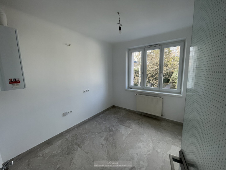 Mit einer Fläche von großzügigen 46 m² erwartet Sie hier ein durchdachter Grundriss, der sowohl Funktionalität als auch Gemütlichkeit vereint. Die Wohnung, die sich im 1. Stock eines gepflegten Mehrfamilienhauses befindet, ist nach der durchgeführten Sanierung, ein Erstbezug und überzeugt durch hochwertige Materialien und eine sorgfältige Verarbeitung. Fliesen und Parkettböden schaffen eine harmonische Atmosphäre, während die Fenster für viel Tageslicht und einen wunderbaren Grünblick sorgen.