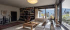 Das Herzstück bildet das große Wohnzimmer mit abgesenkter Lounge, offenem Kamin und Panorama-Fensterfront.