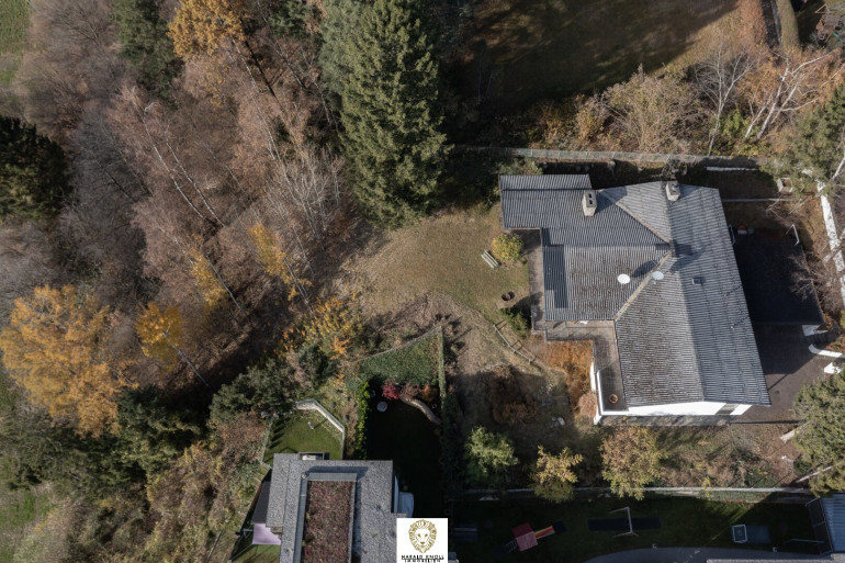 Das Anwesen besticht durch moderne, großzügige Architektur und weitläufige Gartenflächen. Die Gartenfläche teilt sich in ca. 1.079 qm Bauland und ca. 2.017 qm Wald ein.