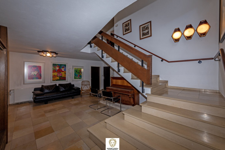 Das Anwesen besticht durch moderne, großzügige Architektur und weitläufige Gartenflächen. Die Gartenfläche teilt sich in ca. 1.079 qm Bauland und ca. 2.017 qm Wald ein.