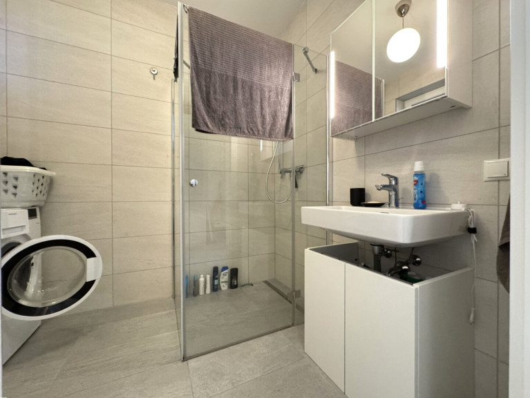 - Badezimmer (4,55 m²) mit moderner Dusche, Waschbecken, WC & Waschmaschinenanschluss
