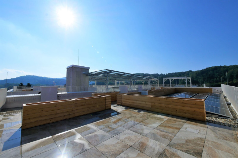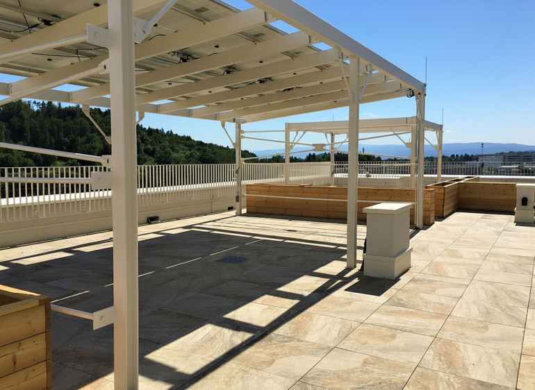 - Frei zugängliche Dachterrasse mit Pergola, Sitzgelegenheiten & Begrünung