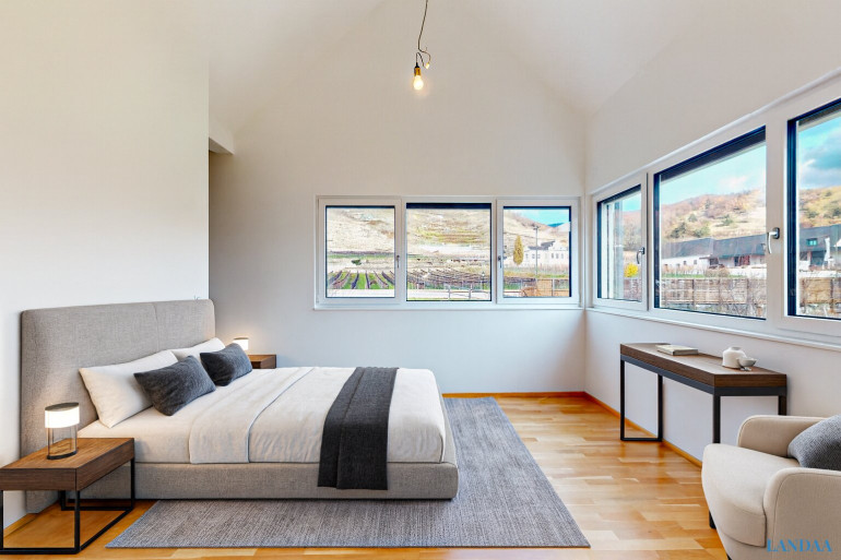 Im Obergeschoss begeistern helle Schlafräume mit sanfter Aussicht über die Wachauer Landschaft. Zwei Bäder, drei Toiletten und moderne Haustechnik sorgen für höchsten Alltagkomfort.