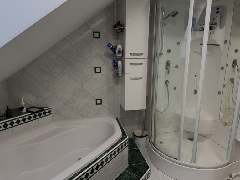 - Bad mit Eckbadewanne, Dusche und WC