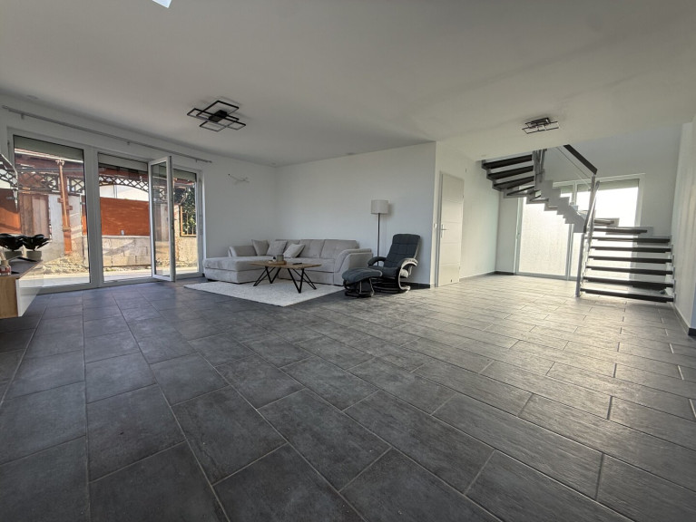Dieses großzügig angelegte Einfamilienhaus überzeugt durch seine moderne Architektur, helle Räume und eine ruhige Lage mit schönem Blick auf die umliegenden Felder. Große Fensterflächen sorgen für viel Tageslicht und schaffen ein besonders angenehmes Wohnambiente.