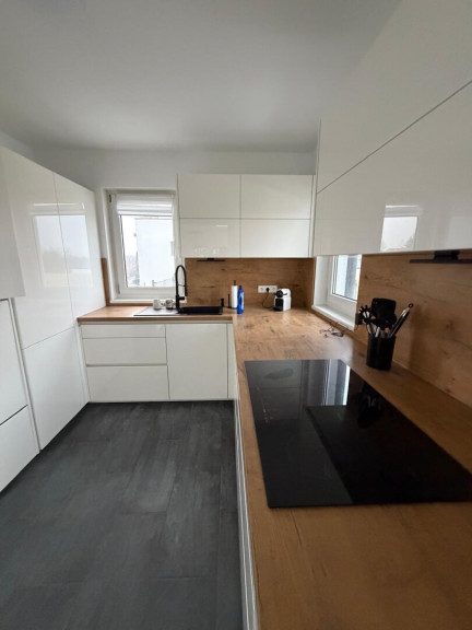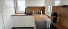 •Eine Küche ohne Geräte, die bereits eingebaut und inkludiert ist