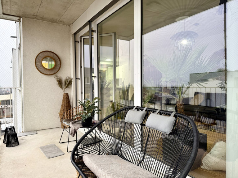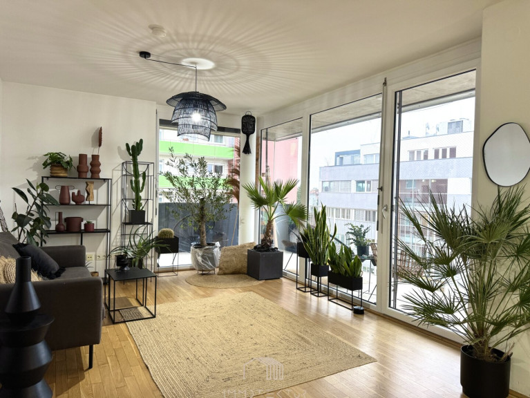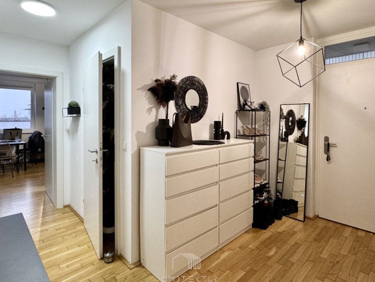 Absolutes Highlight: der 33 m² Balkon, der sich über die gesamte Wohnungsfront erstreckt – perfekt für Entspannung, Outdoor-Dining oder Urban Gardening, mit einem attraktiven Fernblick aus dem 4. Obergeschoß.