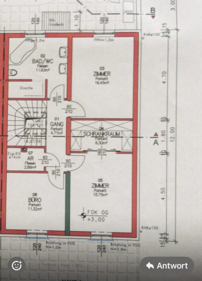 + 1. Schlafzimmer 16,45 m² + Schrankraum 6,30 m² gesamt 22,75 m²