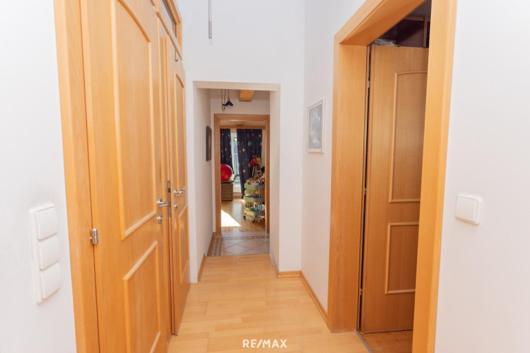 Über den Vorraum (ca. 15 m²) betreten Sie das hofseitige, ca. 19 m² große, west-/nord-west-seitige ausgerichtete Wohnzimmer mit kleinem Balkon (ca. 1 m²) samt offener Küche (ca. 17 m²), ein hofseitiges Zimmer (inkl. begehbarem Schrank) mit kleinem Balkon (ca. 1 m²) und ein weiteres, ost-seitiges Zimmer mit ca. 21 m². Darüber hinaus gibt es auf dieser Ebene auch das Bad mit Badewanne und Dusche, ein separates WC und einen Abstellraum mit Waschmaschinenanschluss.