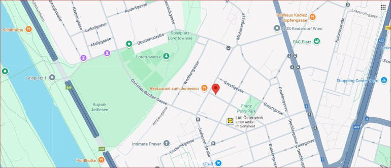 - Bahnhof Floridsdorf (S-Bahn/U6) mit Bus (34A) oder Straßenbahn (26) in ca. 15 Minuten erreichbar