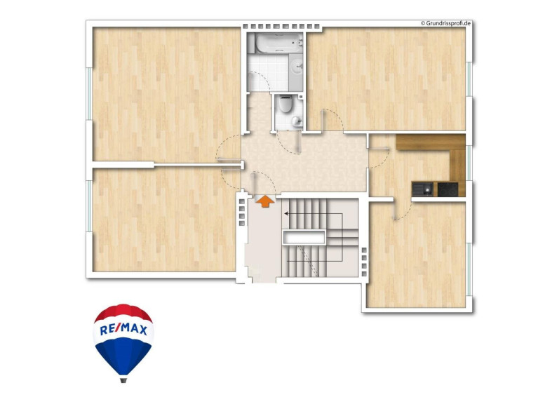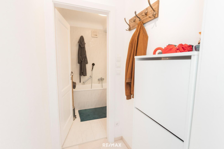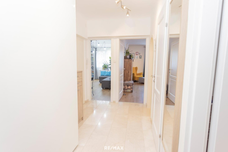 Über den Vorraum gelangen Sie in drei der vier Wohnräume, die Küche mit Fenster, das Bad mit Wanne und das separate WC.