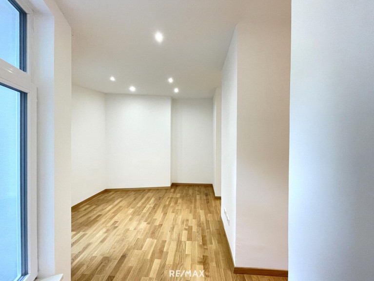 Aus dem Vorraum gelangen Sie in die ca. 20 m² große Wohnküche mit Ausgang in den eigenen, ca. 28 m² großen, hofseitigen Garten sowie das ca. 10 m² große Schlafzimmer, welches ebenfalls über einen Ausgang in den Garten verfügt.