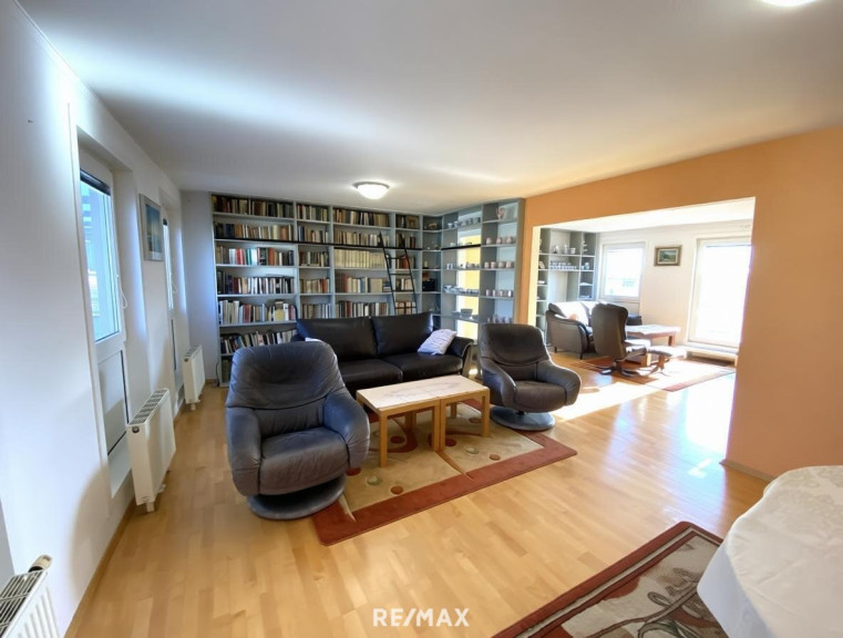 Zum Verkauf gelangt eine Dachgeschoßwohnung ohne Dachschrägen im 8. Liftstock, mit zwei großen Terrassen auf Wohnebene und einer Loggia.Die Wohnung befindet sich fast im 19. Bezirk, zwischen dem Döblinger Steg und der Heiligenstädter Brücke.