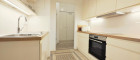Die eingebaute DAN-Küche, ausgestattet mit modernen BOSCH-Geräten, ist leicht vom Wohnbereich abgetrennt – eine gelungene Mischung aus offener Wohnküche und dezenter Separation, die den Raum strukturiert und gestalterisch aufwertet.