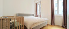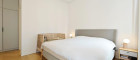 ein ruhiges Schlafzimmer mit hohen Einbauschränken