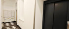 ein Vorraum mit einem praktischen Abstellraum mit eingebauten Regalen inkl. Anschluss für Waschmaschine