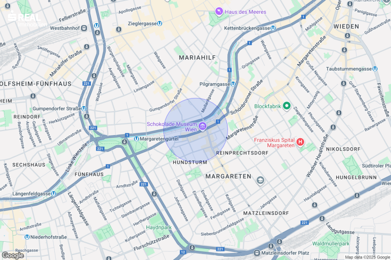 Auch die öffentliche Verkehrsanbindung ist hervorragend: Die U4-Stationen Pilgramgasse sowie Margaretengürtel sind in wenigen Gehminuten erreichbar und bieten eine schnelle Verbindung in die Wiener Innenstadt, zum Naschmarkt sowie in weitere zentrale Bezirke. In wenigen Jahren wird zusätzlich die Linie U2 (Station Reinprechtsdorfer Straße bzw. Pilgramgasse) eine noch bessere Verkehrsanbindung ermöglichen – das Wiener Rathaus ist dann nur zwei Stationen entfernt.
