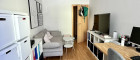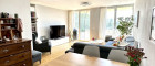 Das Wohnzimmer mit offener Küche, die Loggia, das Bad und das große Schlafzimmer sind südostseitig orientiert und Sie genießen einen schönen freien Blick auf einen grünen Vereinssportplatz.