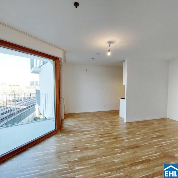 Sonnwendviertel: 1-Zimmer-Wohnung mit Balkon im 16. OG – Fitnessraum, Co-Working & Rooftop-Terrasse inklusive!