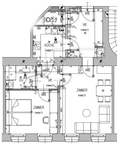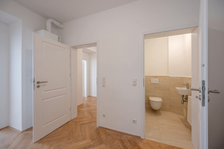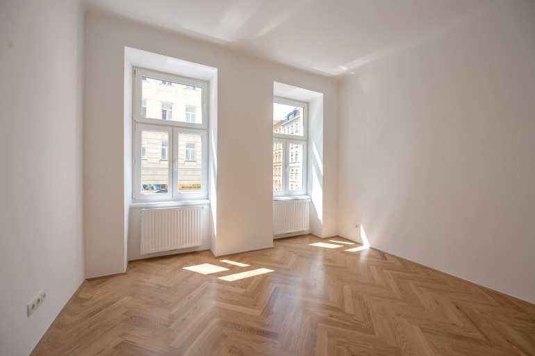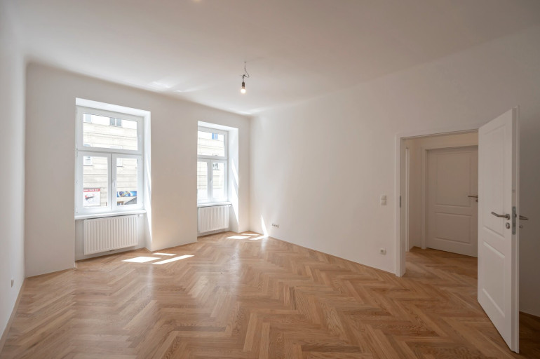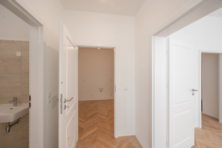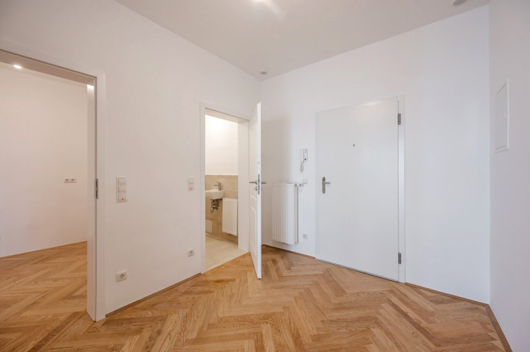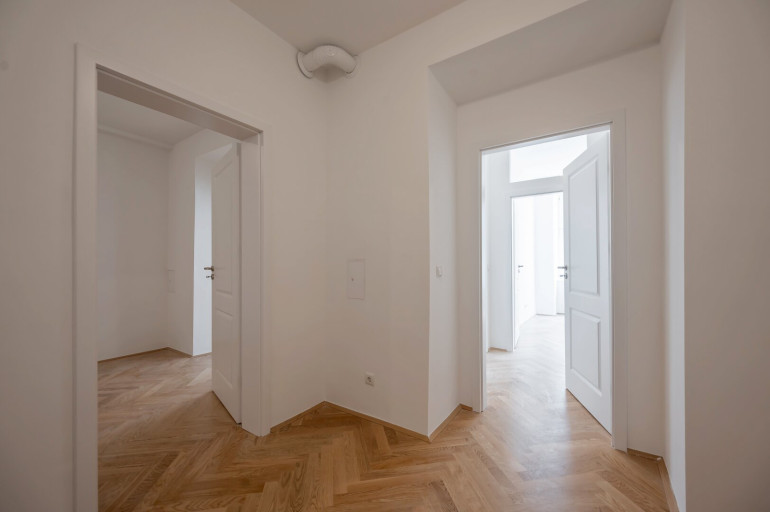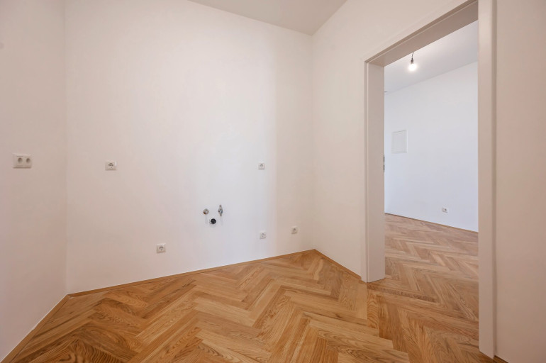Die Wohnung wurde generalsaniert, inklusive aller Leitungen, und befindet sich im Erstbezug (ohne Küche).