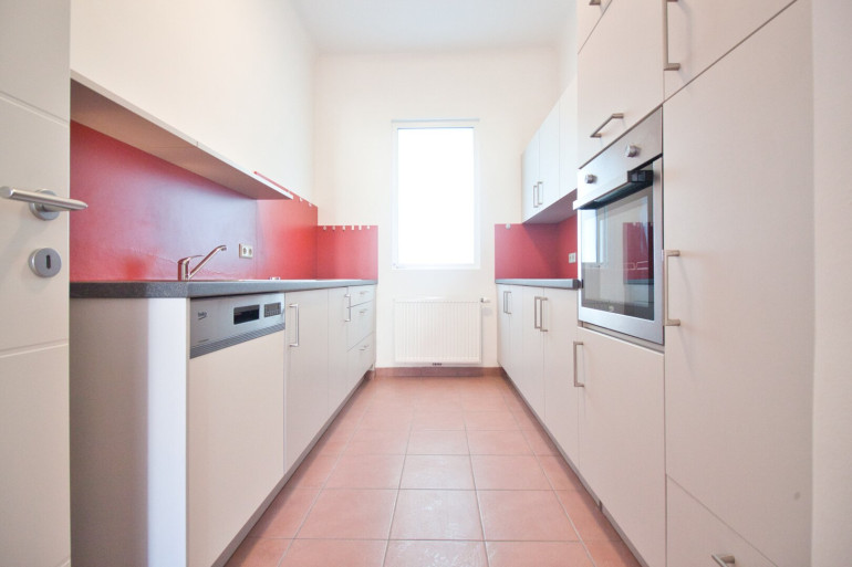 3 westseitige Zimmer sind hell und gut geschnitten. Die Küche ist vollausgestattet und über ein Fenster zum Stiegenhaus kommt auch natürliches Licht hinein. Ein riesiges Badezimmer, das mit Badewanne, Dusche, 2 Waschtischen und einem Waschmaschinenanschluss ausgestattet ist, bietet ebenfalls ein Fenster in das Stiegenhaus. Das WC ist im Bad integriert und räumlich abgetrennt.