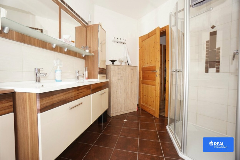 Fliesen, Parkett, Solarenergie, Fußbodenheizung, Wohnküche / offene Küche, Westbalkon, Bad mit Fenster, Badewanne, Dusche, Garage