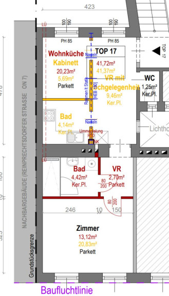 Parkett, Fliesen, Gas, Etagenheizung, Personenaufzug, Dusche