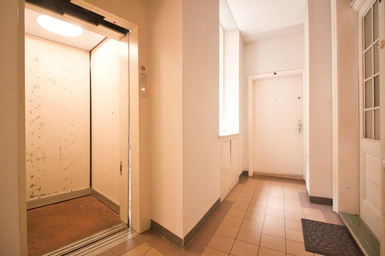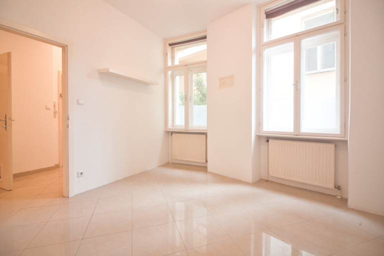 Diese 2-Zimmer-Wohnung befindet sich in einem klassischem Altbau im 1. Stock mit Lift. Die Wohnung ist in einem gepflegten Zustand und kann sofort bezogen werden. Der Vorraum bietet Platz zum Ankommen und für eine Garderobe. Direkt beim Eingang befindet sich ein separates WC mit Handwaschbecken und gegenüberliegend das hofseitige Schlafzimmer in Richtung Osten.