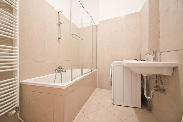 - Badezimmer mit Badewanne und Waschmaschinenanschluss
