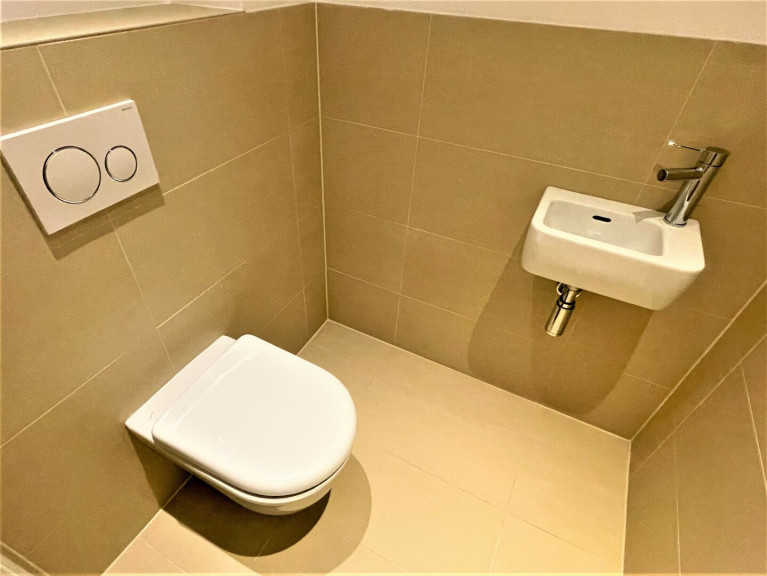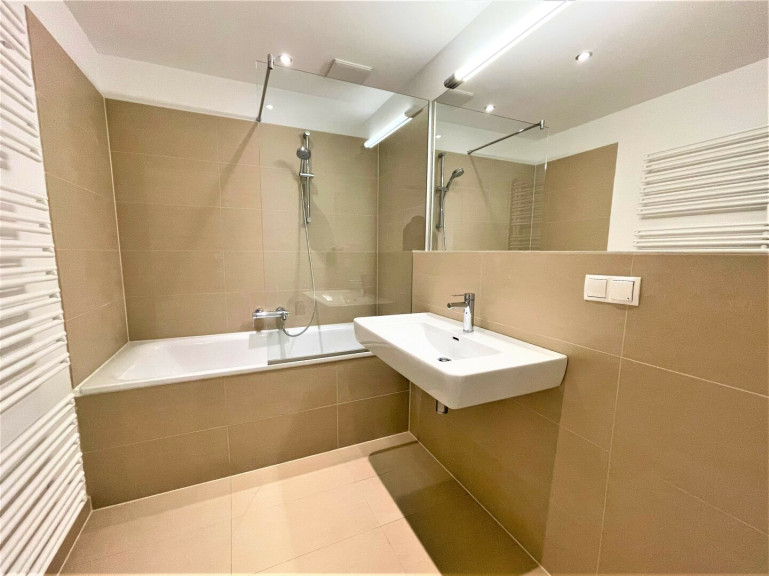 + Badezimmer mit Wannenbad, Waschtisch und Waschmaschinenanschluss