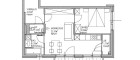 Eingangsbereich, ein Wohn- und Esszimmer mit voll ausgestatteter offenen Küche und Zugang zum Balkon, ein Schlafzimmer, ein Badezimmer mit Wanne und Waschmaschienenanschluss, ein Abstellraum und eine separate Toilette.