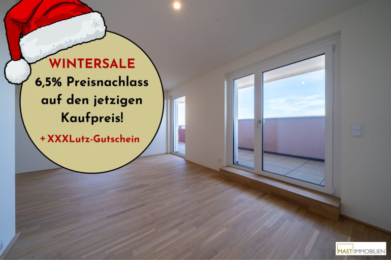 In der kalten Jahreszeit lassen wir die Preise schmelzen: Beim Kauf einer Eigentumswohnung in einem unserer Objekte in der Berresgasse ersparst du dir bis 31.3.2026 die Nebenkosten* und bekommst so jede Wohnung um 6,5% günstiger.