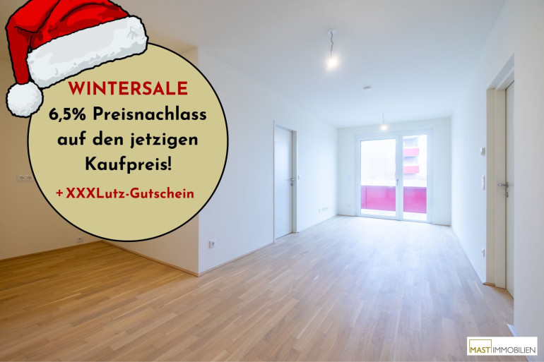 In der kalten Jahreszeit lassen wir die Preise schmelzen: Beim Kauf einer Eigentumswohnung in einem unserer Objekte in der Berresgasse ersparst du dir bis 31.3.2026 die Nebenkosten* und bekommst so jede Wohnung um 6,5% günstiger.