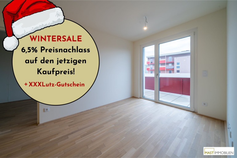 In der kalten Jahreszeit lassen wir die Preise schmelzen: Beim Kauf einer Eigentumswohnung in einem unserer Objekte in der Berresgasse ersparst du dir bis 31.3.2026 die Nebenkosten* und bekommst so jede Wohnung um 6,5% günstiger.